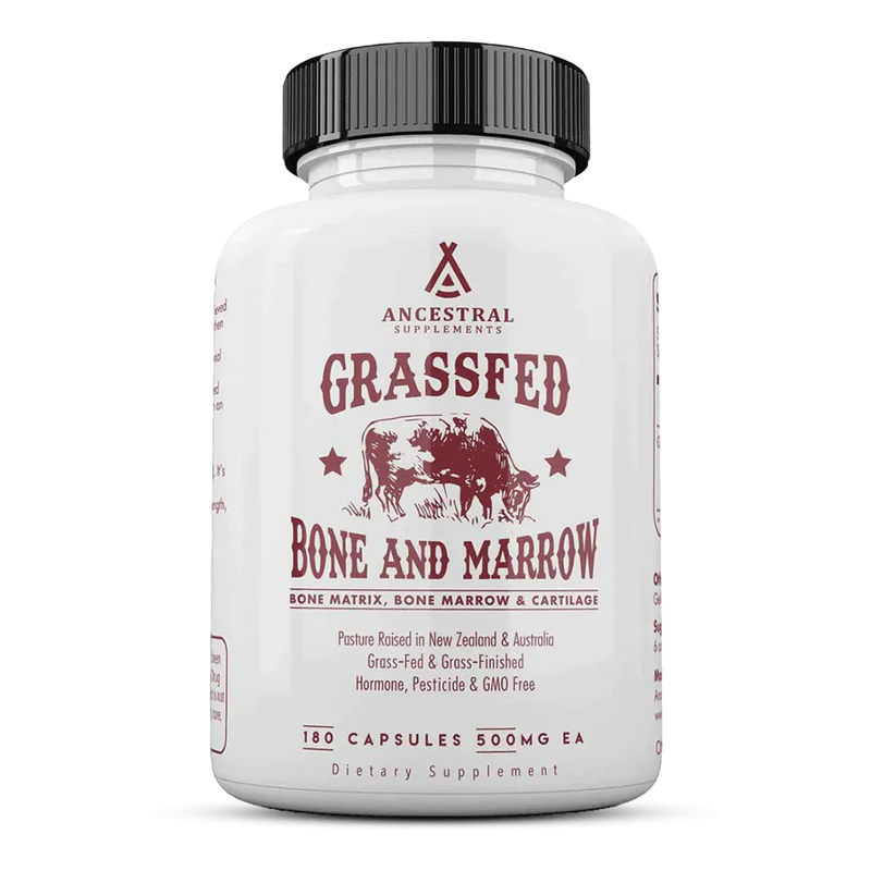 Ontdek de krachtige voordelen van grasgevoerde runderbot & beenmerg capsules van Ancestral Supplements – een natuurlijke bron van essentiële voedingsstoffen zoals collageen, stamcellen, glycosaminoglycanen en alkylglycerolen (AKG’s). Deze unieke combinatie voedt je botten, bindweefsel en algehele welzijn.
