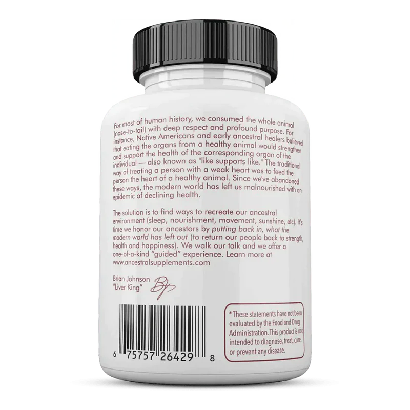 Ancestral Supplements gelooft in de kracht van voeding zoals de natuur het bedoeld heeft. Het merk biedt hoogwaardige organen- en orgaanvlees supplementen, afkomstig van grasgevoerde runderen uit Nieuw-Zeeland. Geïnspireerd door de wijsheid van onze voorouders, streeft Ancestral Supplements ernaar om essentiële voedingsstoffen in hun meest pure en biologische vorm toegankelijk te maken. Of het nu gaat om lever, hart of bijnier, elk supplement is zorgvuldig samengesteld om optimale gezondheid, energie en vitaliteit te ondersteunen. Kies voor Ancestral Supplements en voed je lichaam op de manier waarop het van nature bedoeld is.