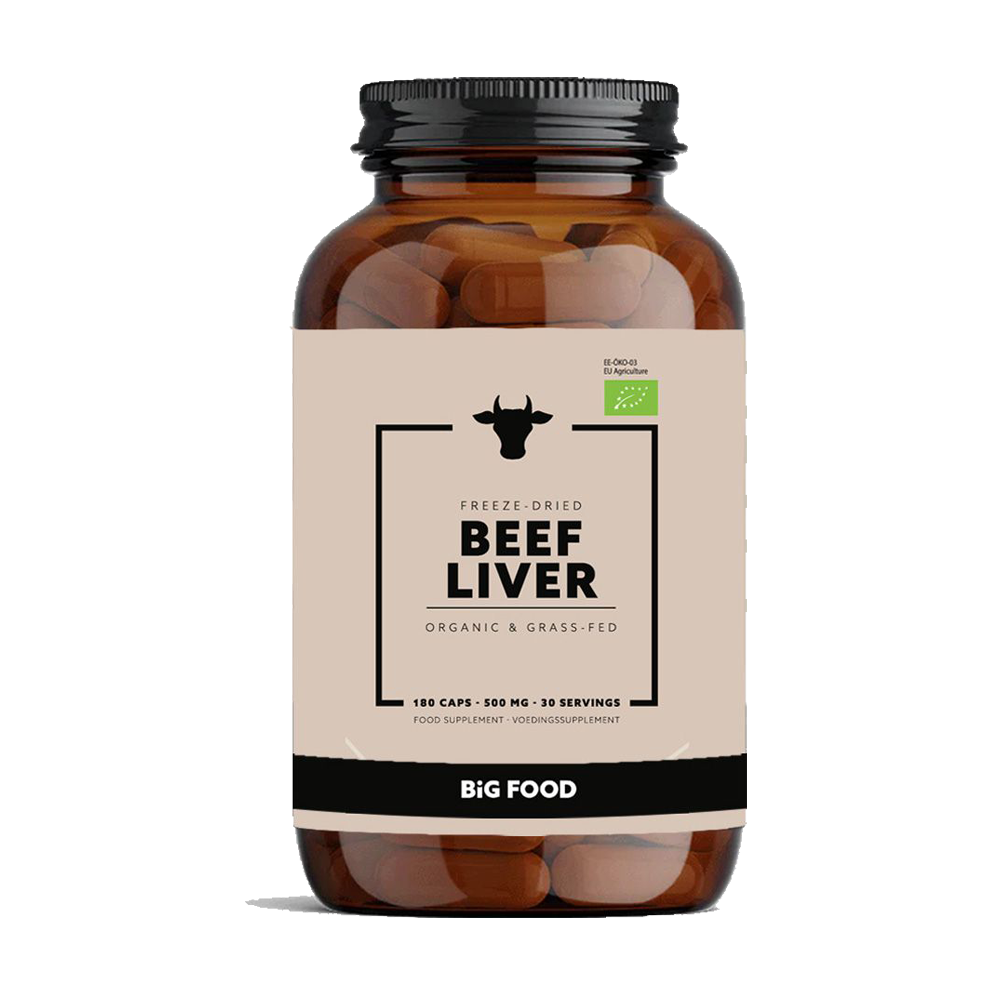 Advies: 6 capsules Big Food – Organic Beef Liver per dag (3000mg)