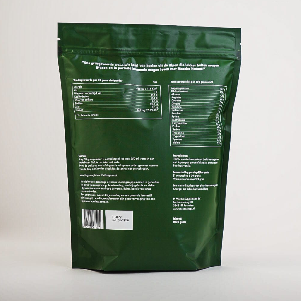 Ingrediënten Motion Supplements – Grasgevoerde Whey Vanille: